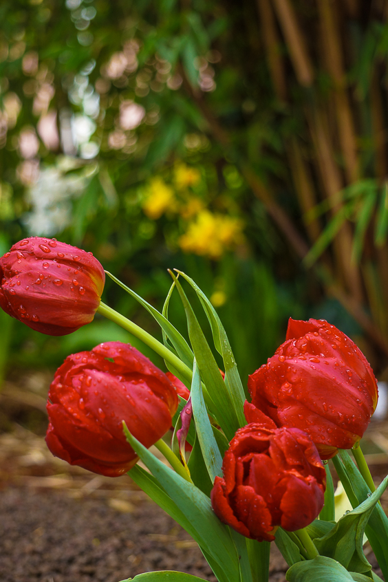 Hübsch sind die roten Tulpen, Pierre. Ich kaufe keine mehr, sie blühen ein oder zwei Jahre, dann beschränkt sich die Pracht auf riesige Laubblätter. Aber meinen Wildtulpen-Bestand möchte ich noch gerne aufstocken. Zuverlässig blüht in meinem Garten Tulipa biflora. Sie hält sich sogar im Schatten.
