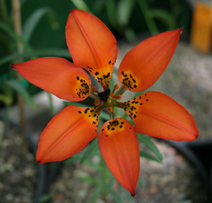 ein neuzugang, noch im topf ...Lilium amoenum, das "als Bindeglied zur Gattung Nomocharis gehalten wird" (quelle). die ähnlichkeit zu nomocharis ist in der tat nicht zu übersehen. ich hatte anfangs noch keine ahnung, was es sein könnte + erstmal mit fotos meiner nomocharis aperta verglichen.