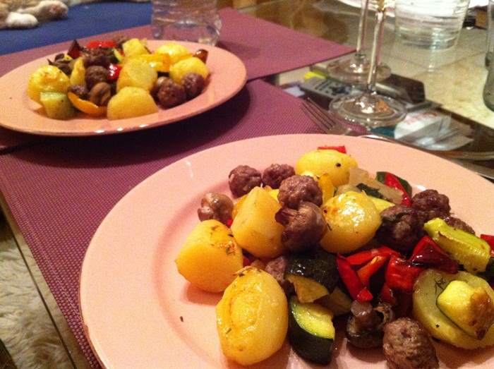 Kartoffelblech mit Lammhackbällchen und div. Gemüse