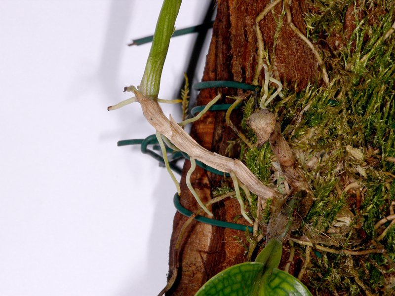 ich würde etwas Moos auf die neuen Wurzeln binden. Dann können sie besser Nährstoffe aufnehmen. Die Wurzeln sind normalerweise voll im Substrat.