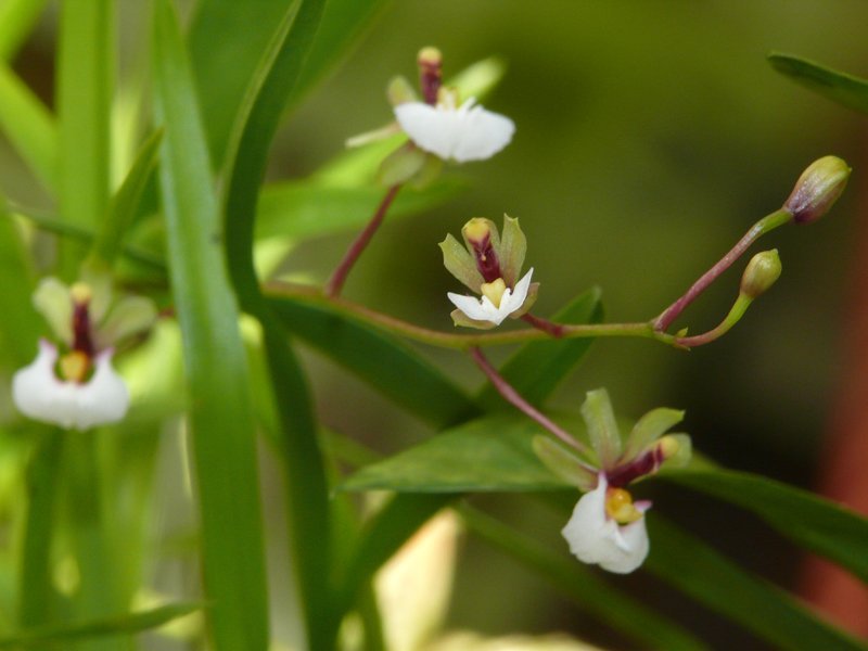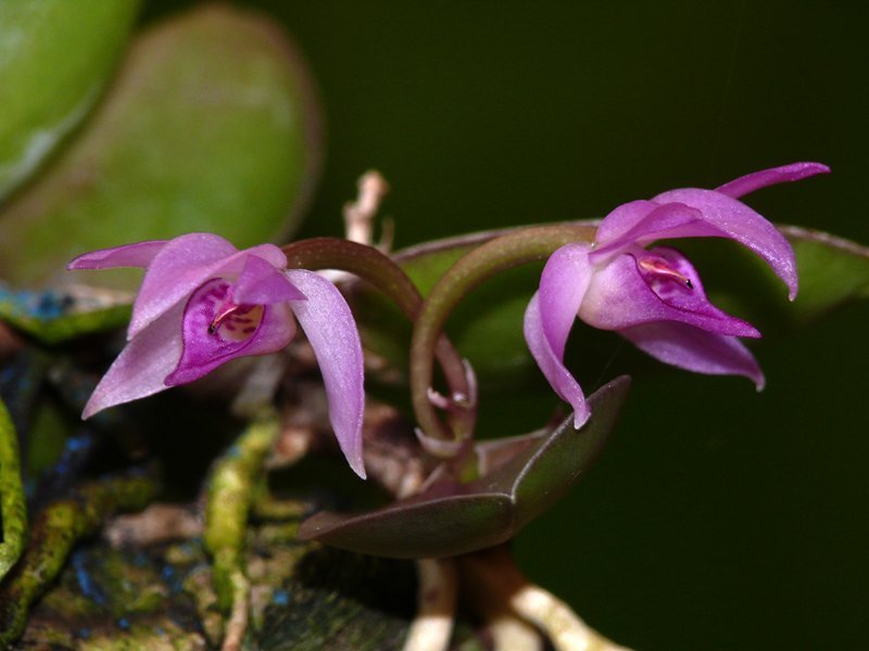 Das Psygmorchis hat sonst die Blüte oberhalb der Pflanze, diese Blüte steht direkt vor der Pflanze. So kann man das Grössenverhältnis gut sehen