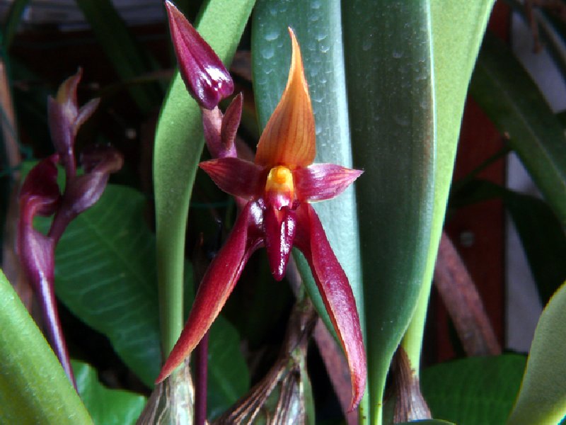 Das ist Bulbophyllum levanae von den Philippinen. Einst sah man da drei sehr ähnliche Arten, B. levanae, B. nymphopolitanum und B. trigonosepalum. Mittlerweile scheint man sich aber einig zu sein, daß die alle zu einer Art gehören. Und das glaube ich auch.